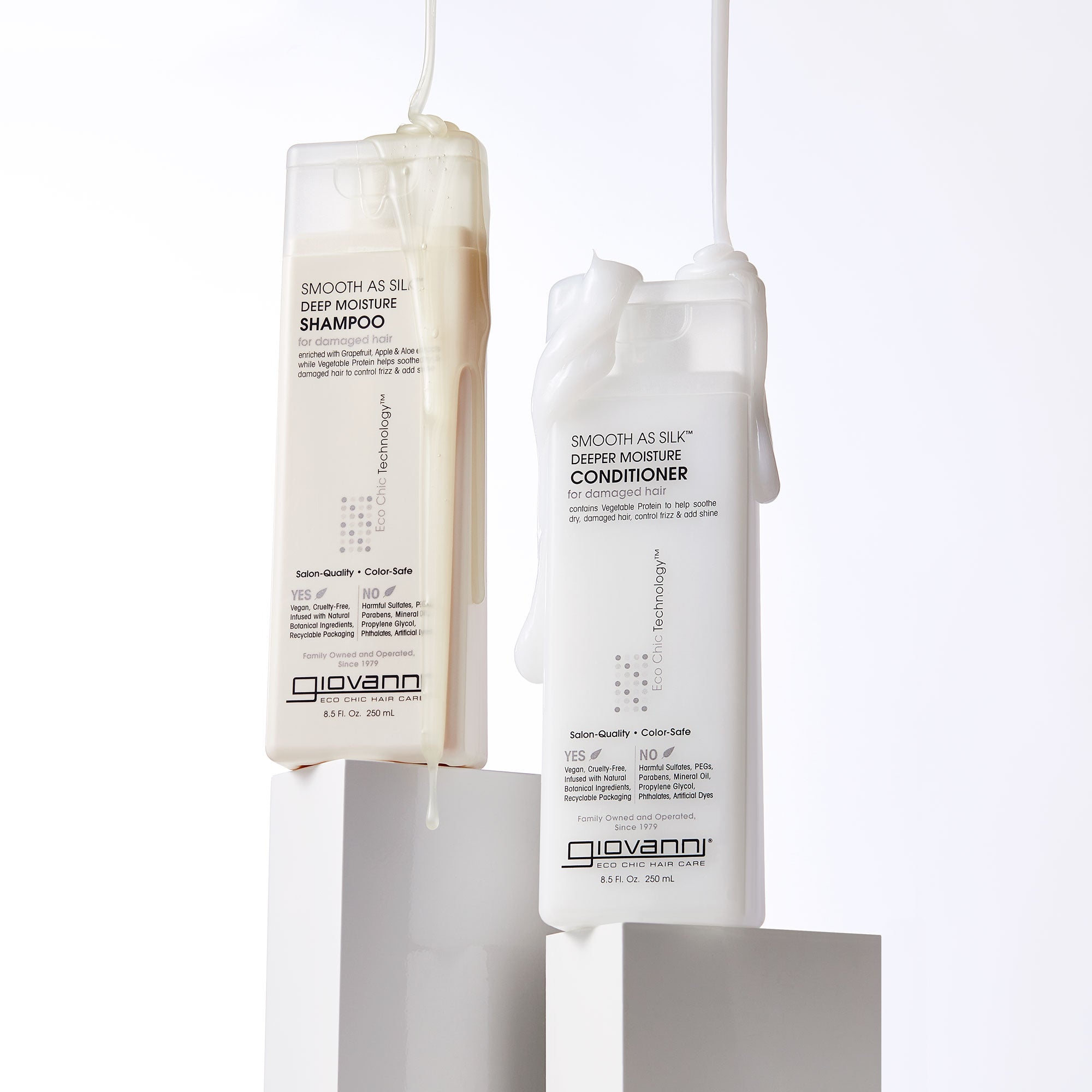 Soft and smooth, sexy and sultry. SMOOTH AS SILK™ Deep Moisture Shampoo from Giovanni® has a pearlized formula that glistens in your hand and transforms your hair into a silky palette. This new and improved Eco Chic® formula with Apple and Aloe extracts provides antioxidant protection and enhanced moisturizers for even silkier hair. Lather and glow with the flow that begins your style. SMOOTH AS SILK™ Deep Moisture Shampoo wears beautifully on you.