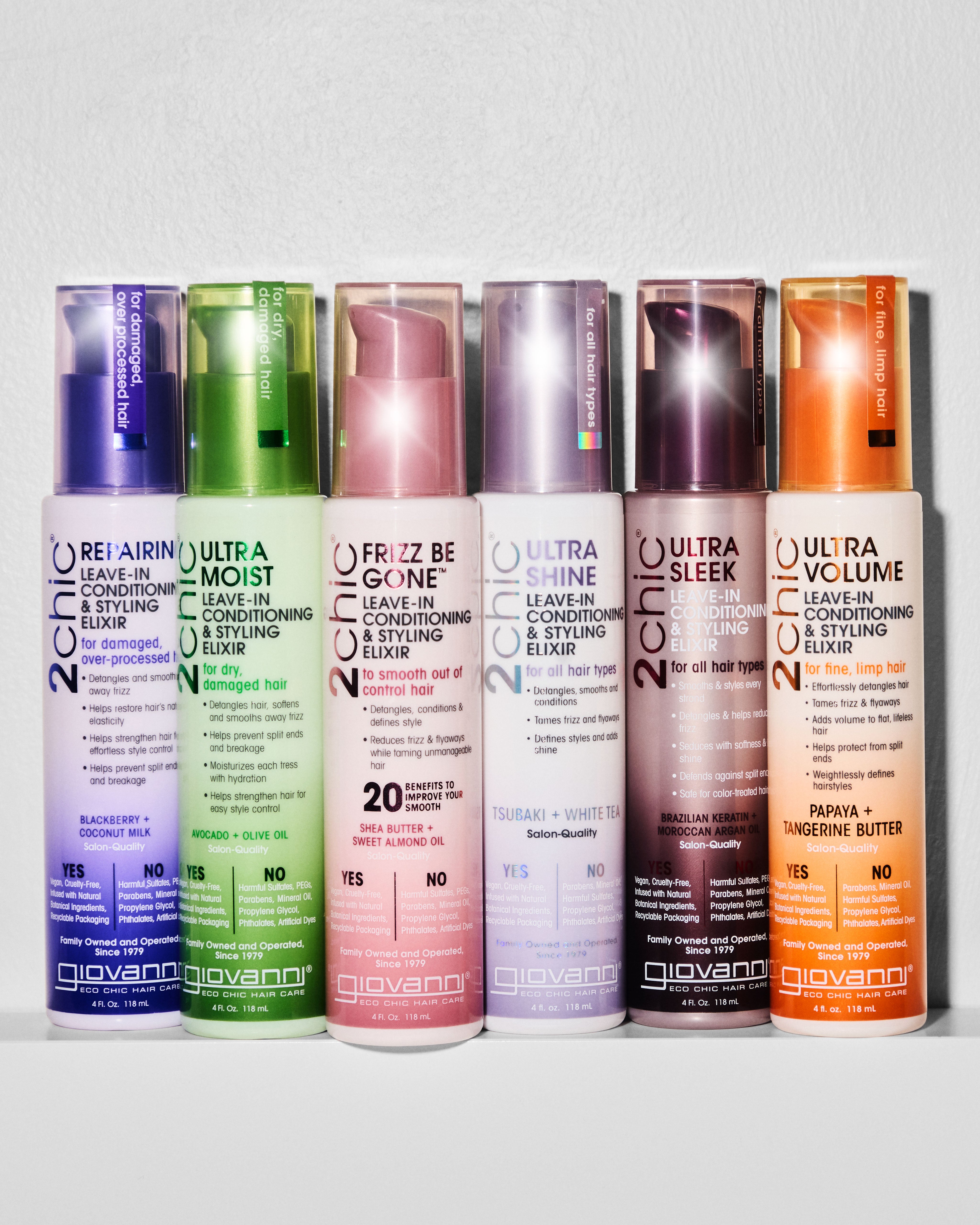 2chic® is to . . . repair and rejuvenate. Strengthen your hair with Giovanni® 2chic® Leave-In Conditioning & Styling Elixir. This leave-in conditioning treatment nurtures with our exclusive Dual Repairing Complex, an essential blend bursting with power that combines freshly ripened Blackberries and the sweet, delicate nectar of Coconut Milk. Energize each strand by drenching your textured hair in protection and moisture, securing tresses from damage. No more dry or unruly hair. It looks and feels flawless and smooth.