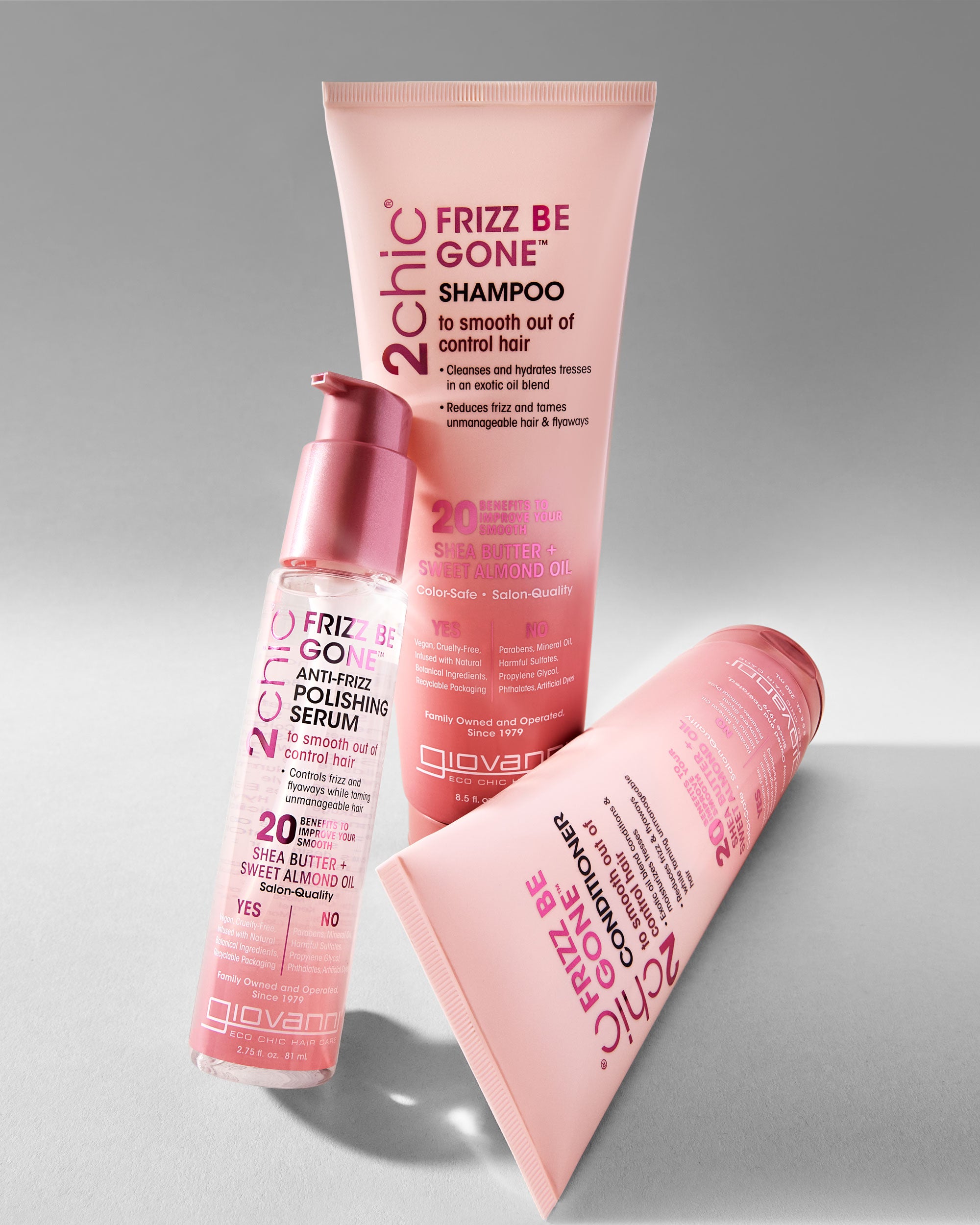 To tame wild hair, explore our full line of 2chic® Frizz Be Gone™ Hair Care, our salon-quality family of professional-strength anti-frizz products for soothing and smoothing your locks. Supplement your anti-frizz hair serum in the shower with 2chic® Frizz Be Gone™ Shampoo and Conditioner.