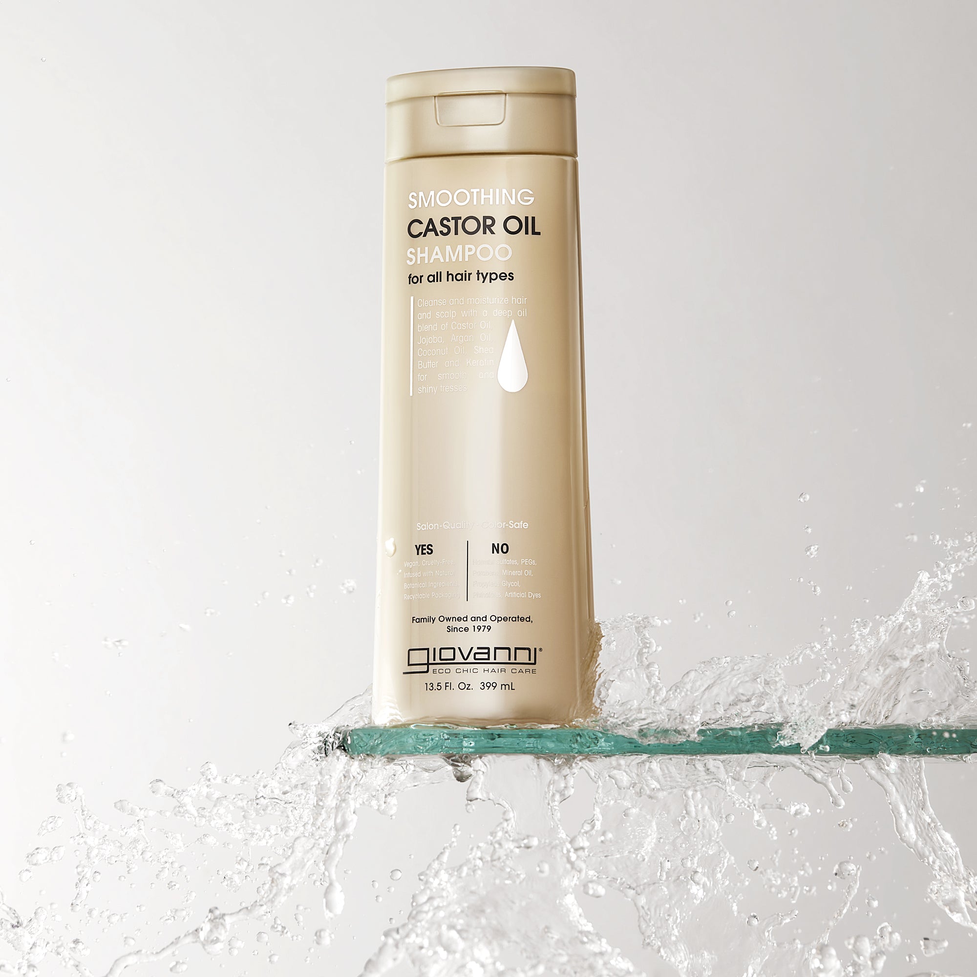 With this Smoothing Castor Oil Shampoo, Giovanni® has secretly formulated the best frizz-taming remedy on the planet, so it’s now time to be rid of that frizz. Clarify and revitalize hair and scalp with Giovanni®’s daily regimen that includes 100% pure Castor Oil. Intensely hydrate and smooth dry, damaged, or normal hair types with our exclusive blend for the ultimate in hair protection and manageability. A shiny, professional, smooth look for beautiful, healthy-looking tresses, every time.